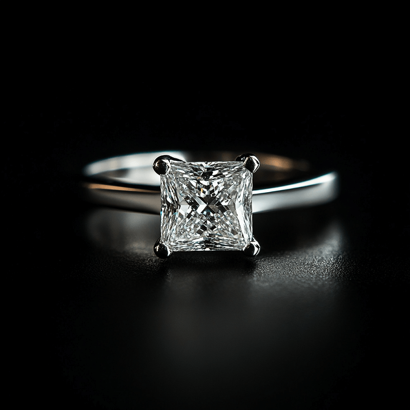 It is a modern, square-shaped diamond known for its contemporary flair and exceptional sparkle. It features pointed corners and a faceted structure that enhances its brilliance. Depending on the length-to-width ratio, princess-cut diamonds can appear square or rectangular. The geometric lines and sharp angles add to the fashion quotient, making it the second most popular centre stone for engagement rings.